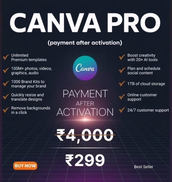So today we have brought this Canva Pro subscription for you, 100% official Canva Pro, only for Rs. 49 per week, Rs. 99 per month and Rs. 299 for the year And not only this, if you take our one-year subscription, quickly go and click on the button below, contact my team and take your Canva Pro subscription.